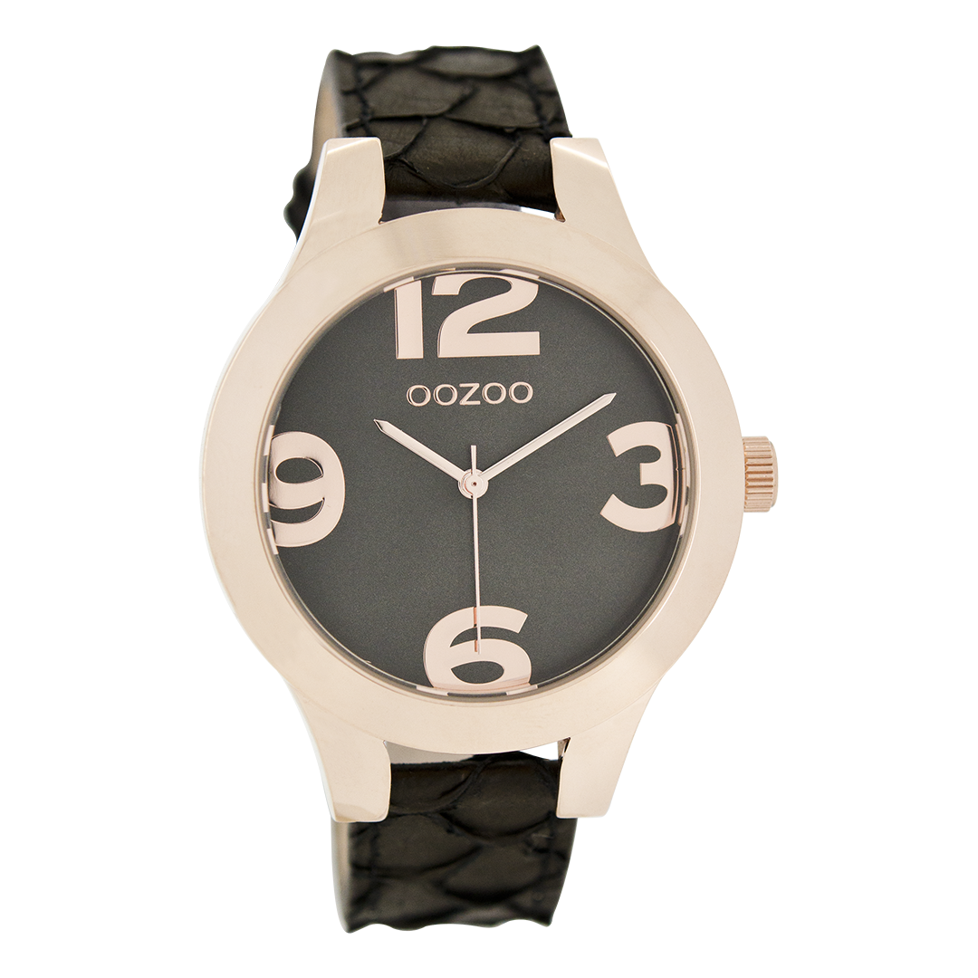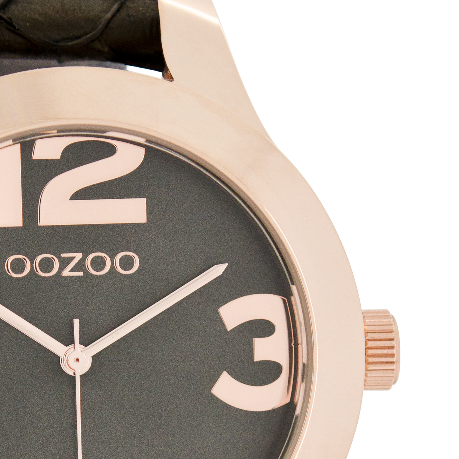 Rose gold coloured OOZOO watch with black leather strap - C7599