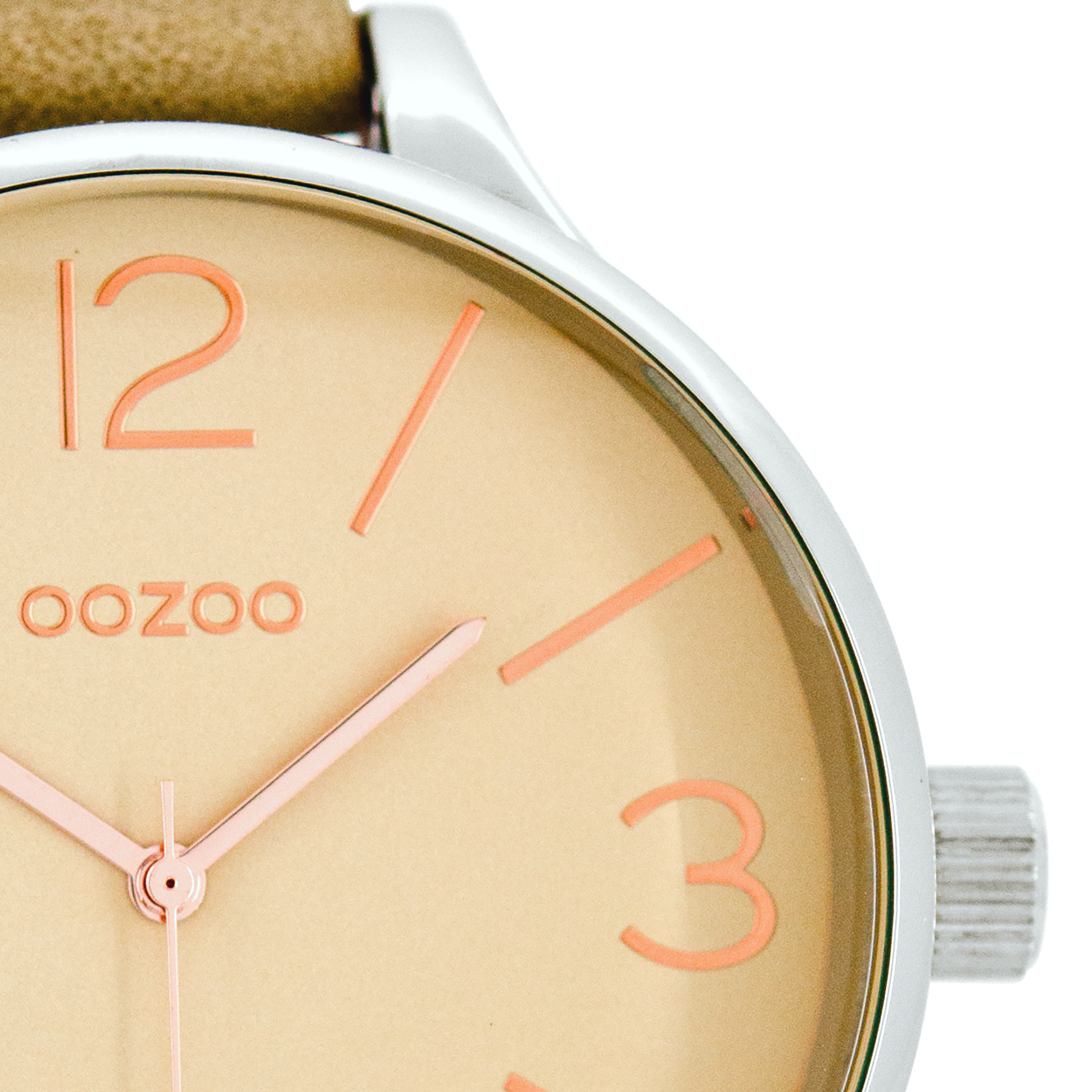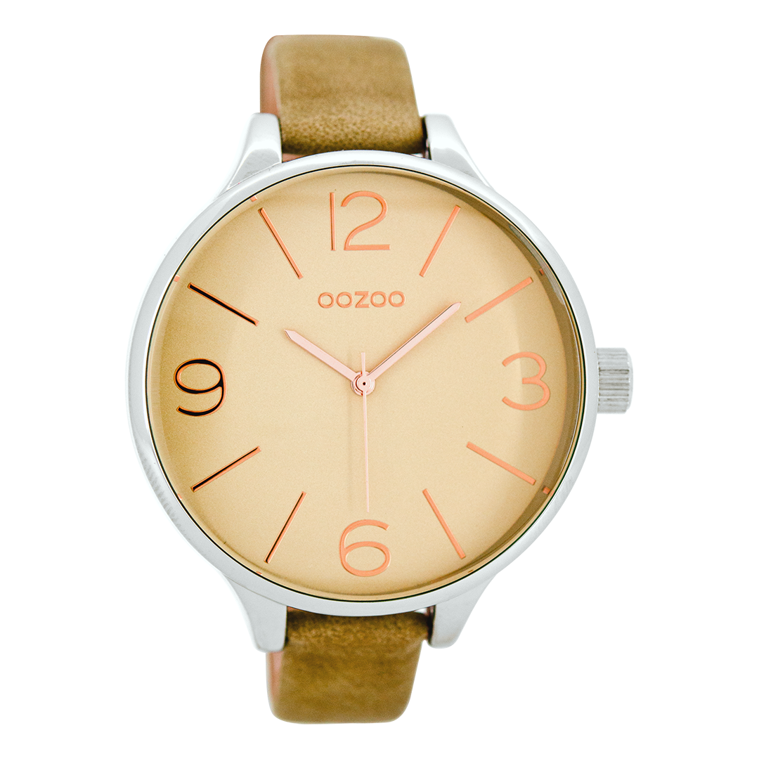 Silver coloured OOZOO watch with sand leather strap - C7965