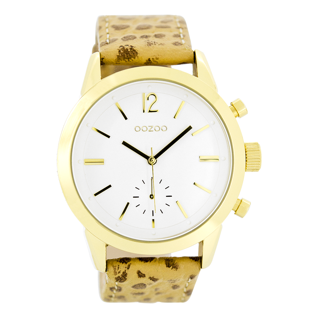Gold coloured OOZOO watch with camel leather strap - C8011