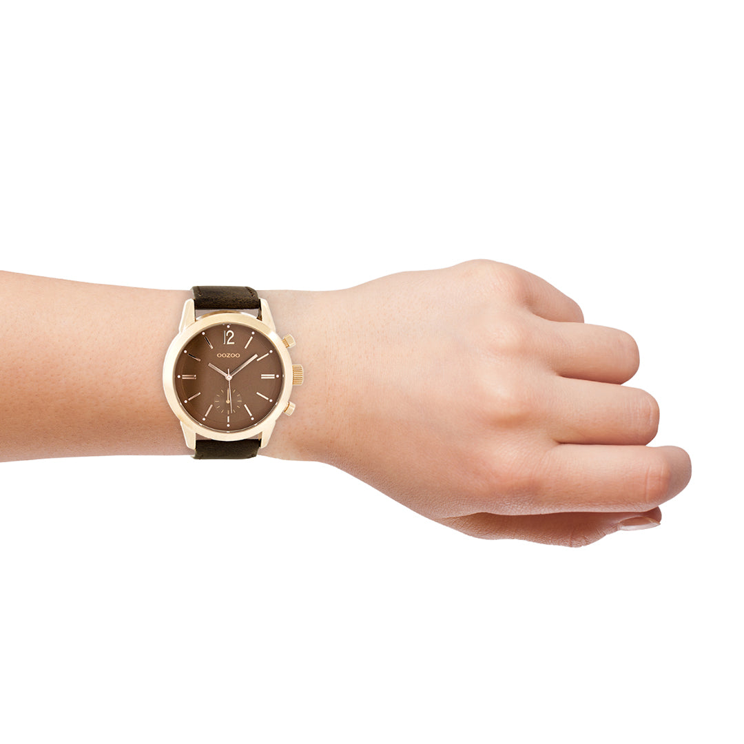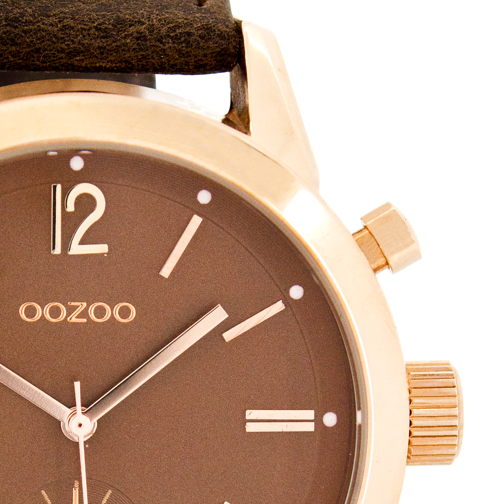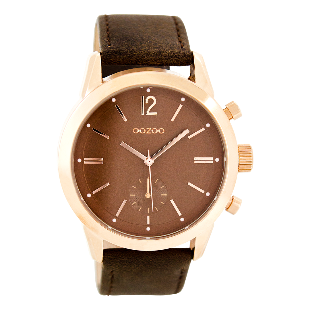 Rose gold coloured OOZOO watch with dark brown leather strap - C8014