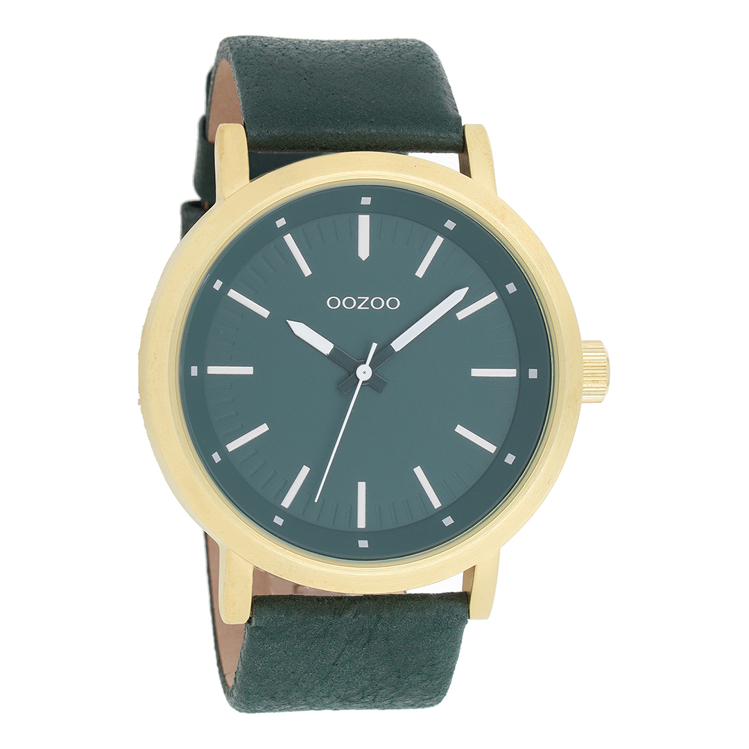 Gold coloured OOZOO watch with dark green leather strap - C8252