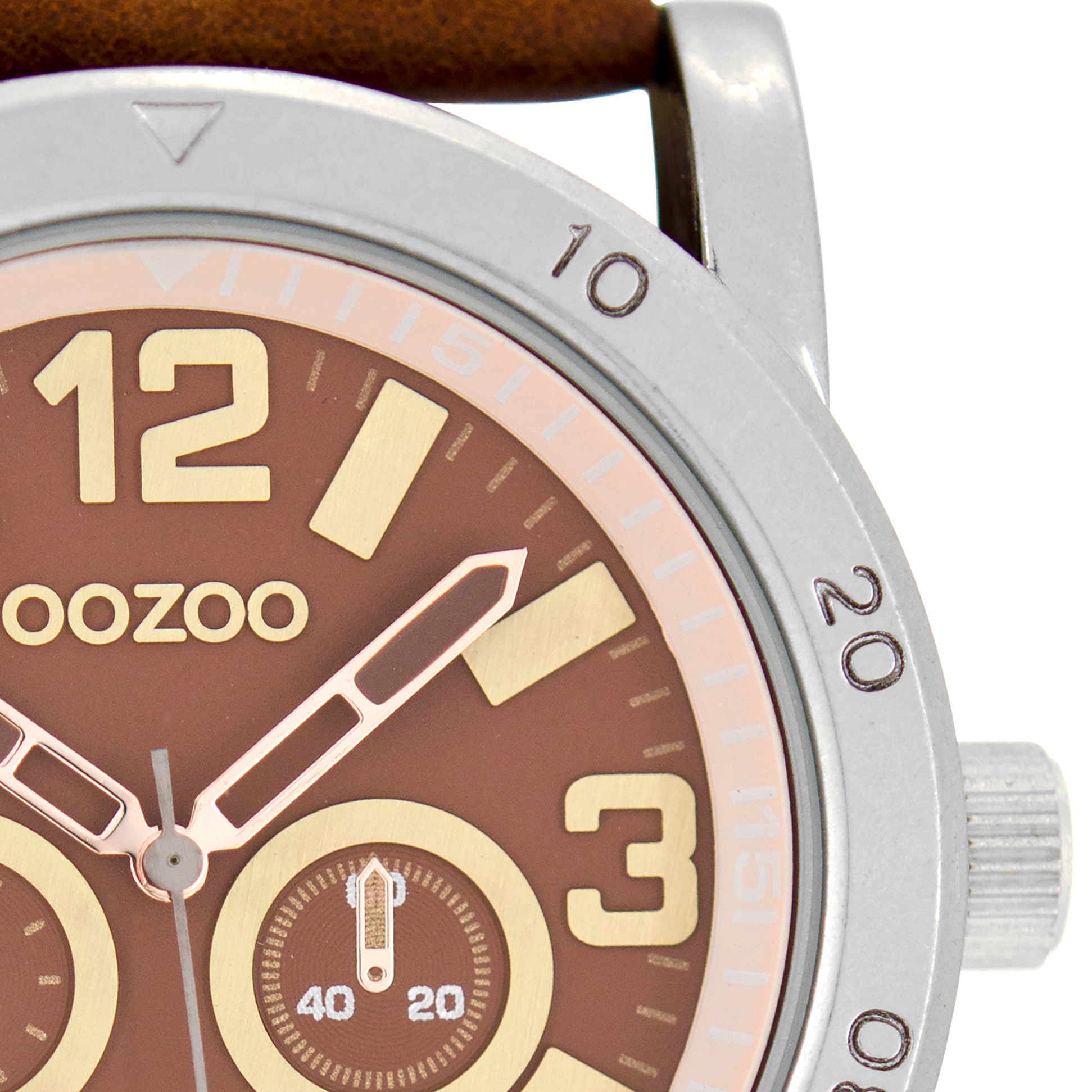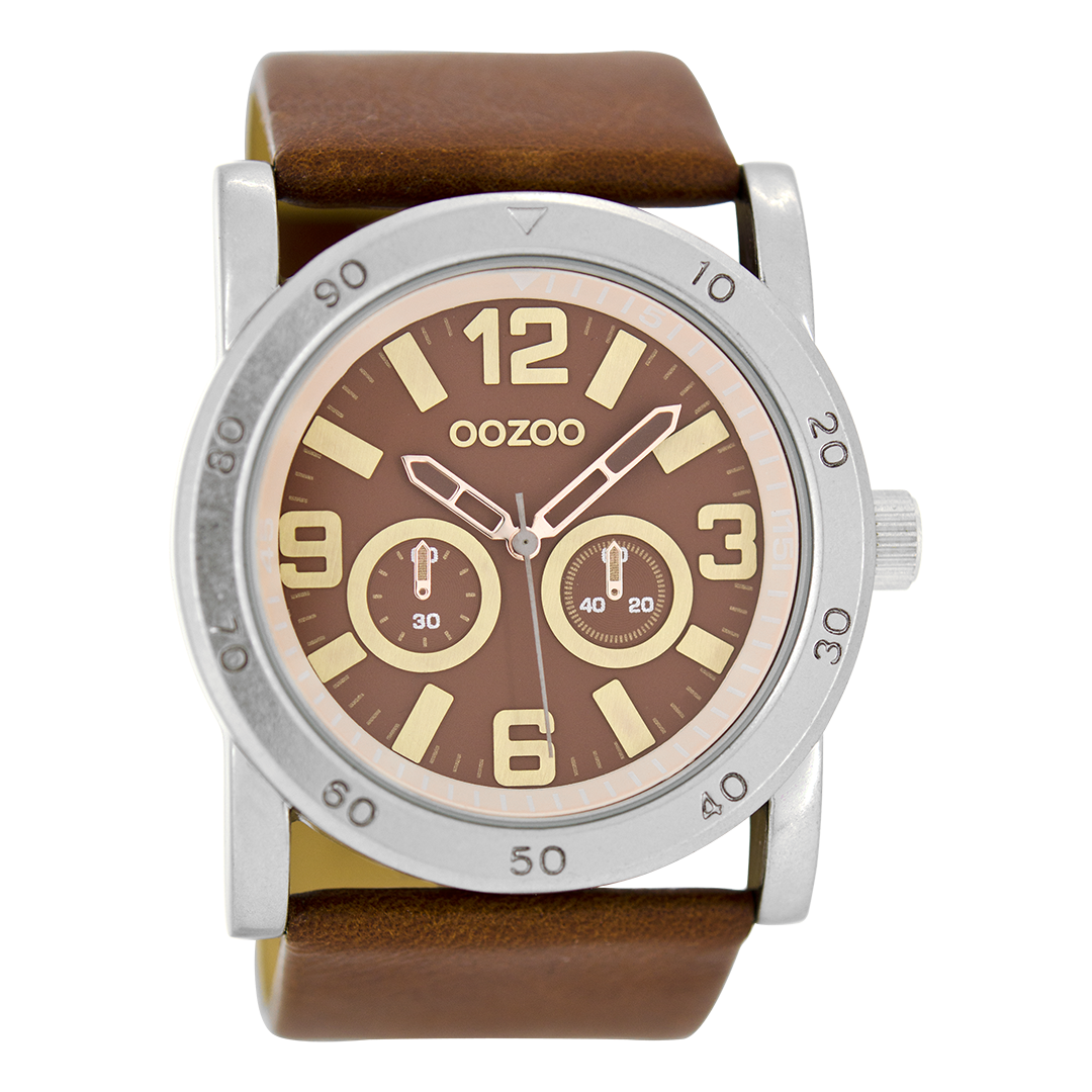 Silver coloured OOZOO watch with brown leather strap - C8306
