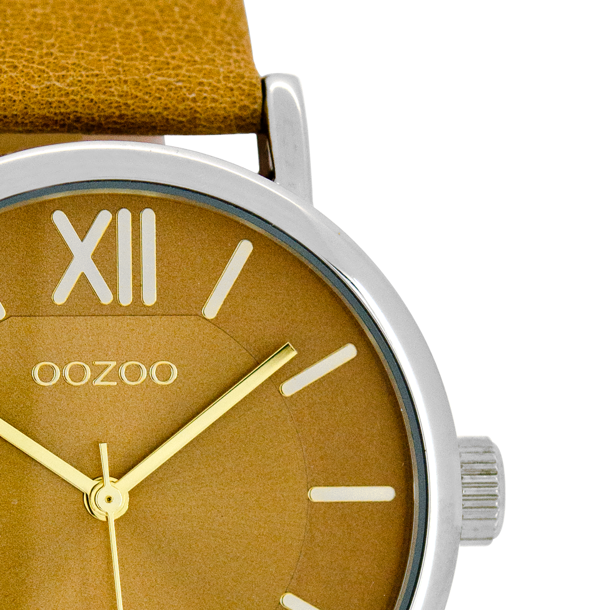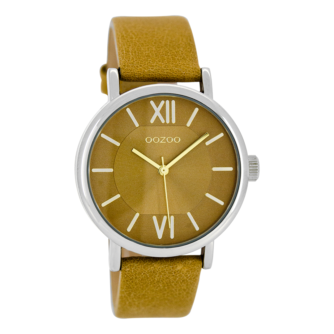 Silver coloured OOZOO watch with sand leather strap - C8320