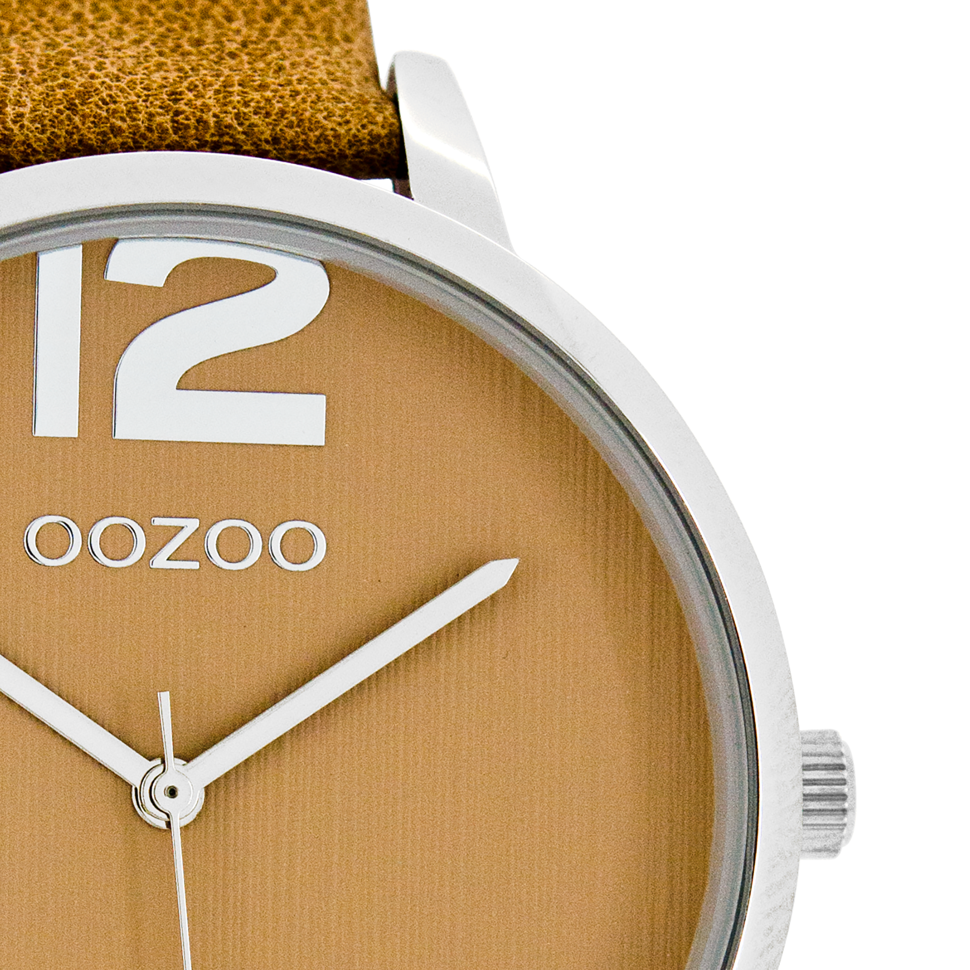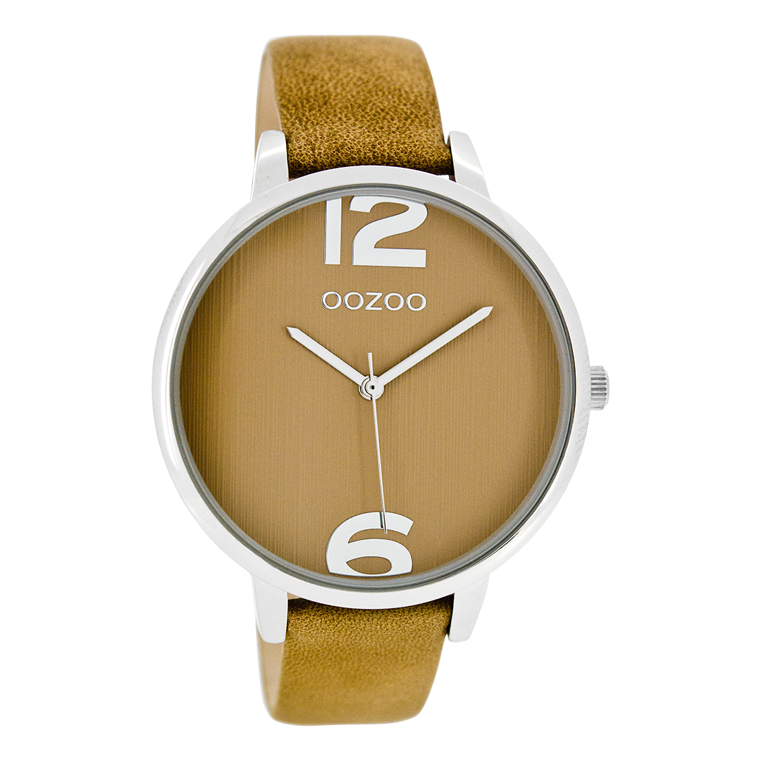 Silver coloured OOZOO watch with sand leather strap - C8341