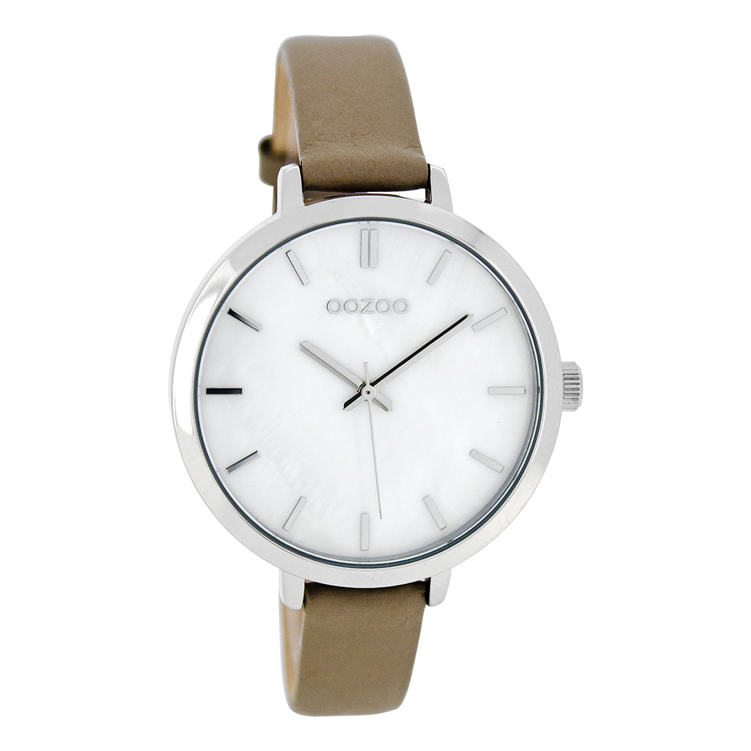 Silver coloured OOZOO watch with taupe leather strap - C8357