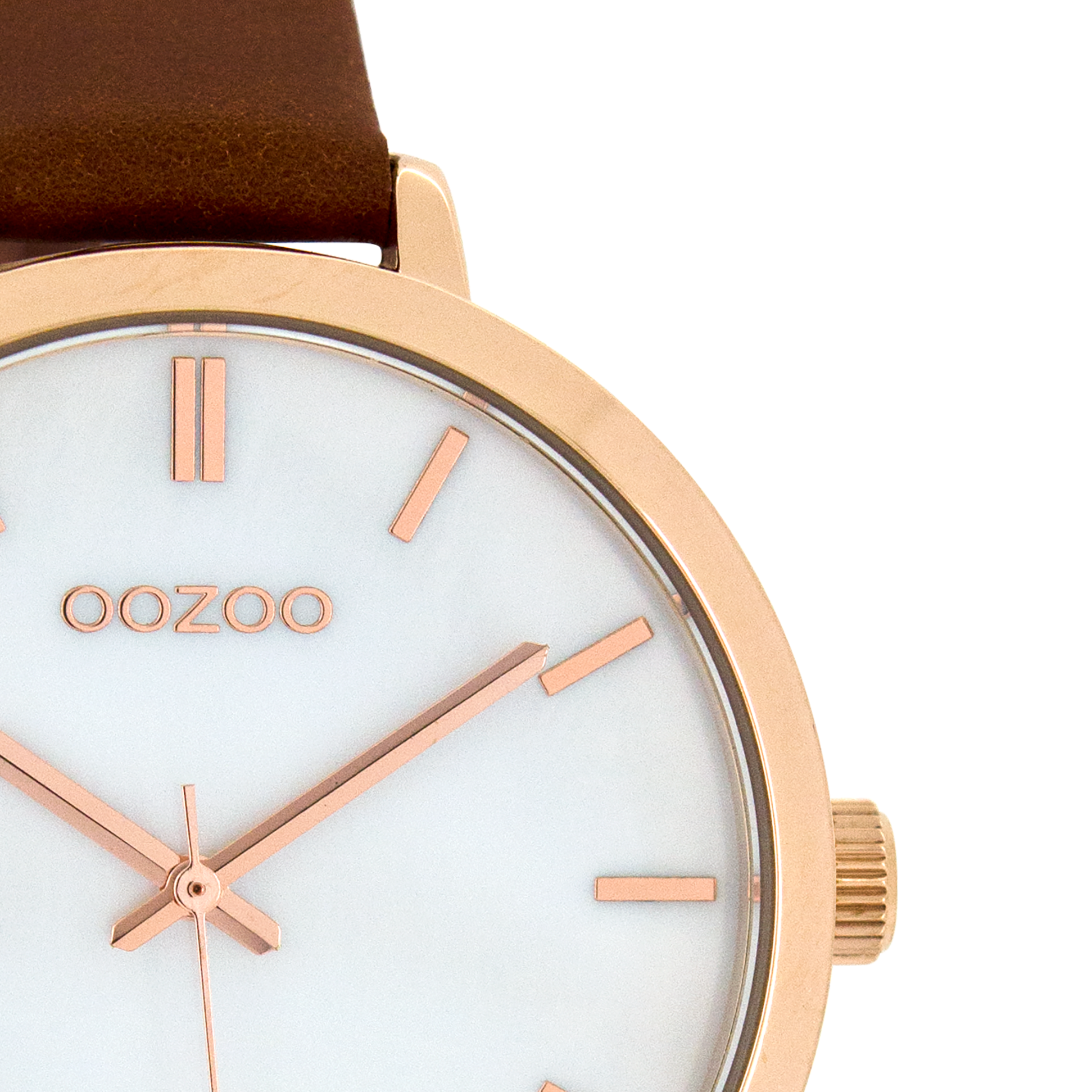 Rose gold coloured OOZOO watch with brown leather strap - C8358