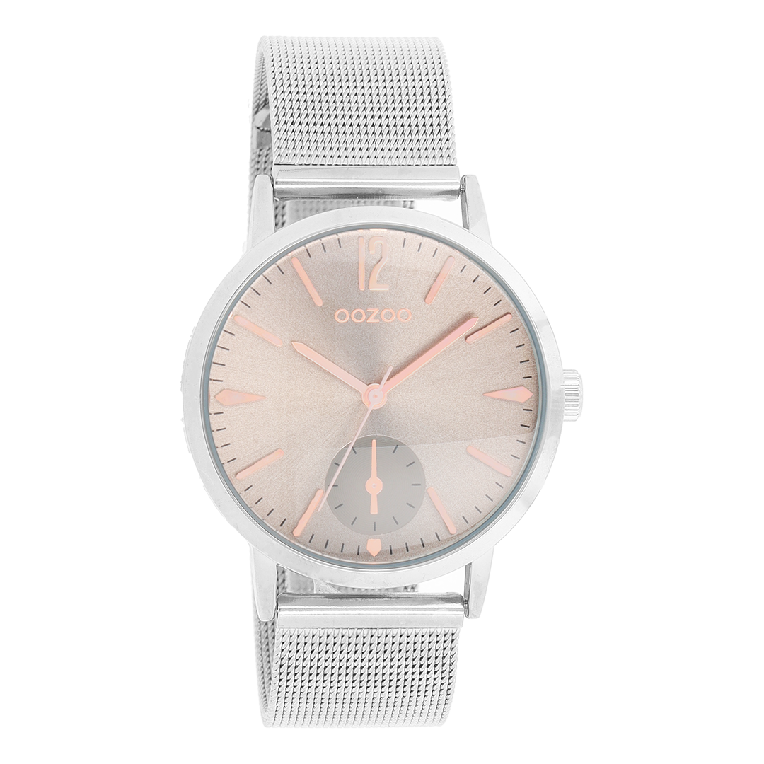 Silver coloured OOZOO watch with metal mesh bracelet - C8617