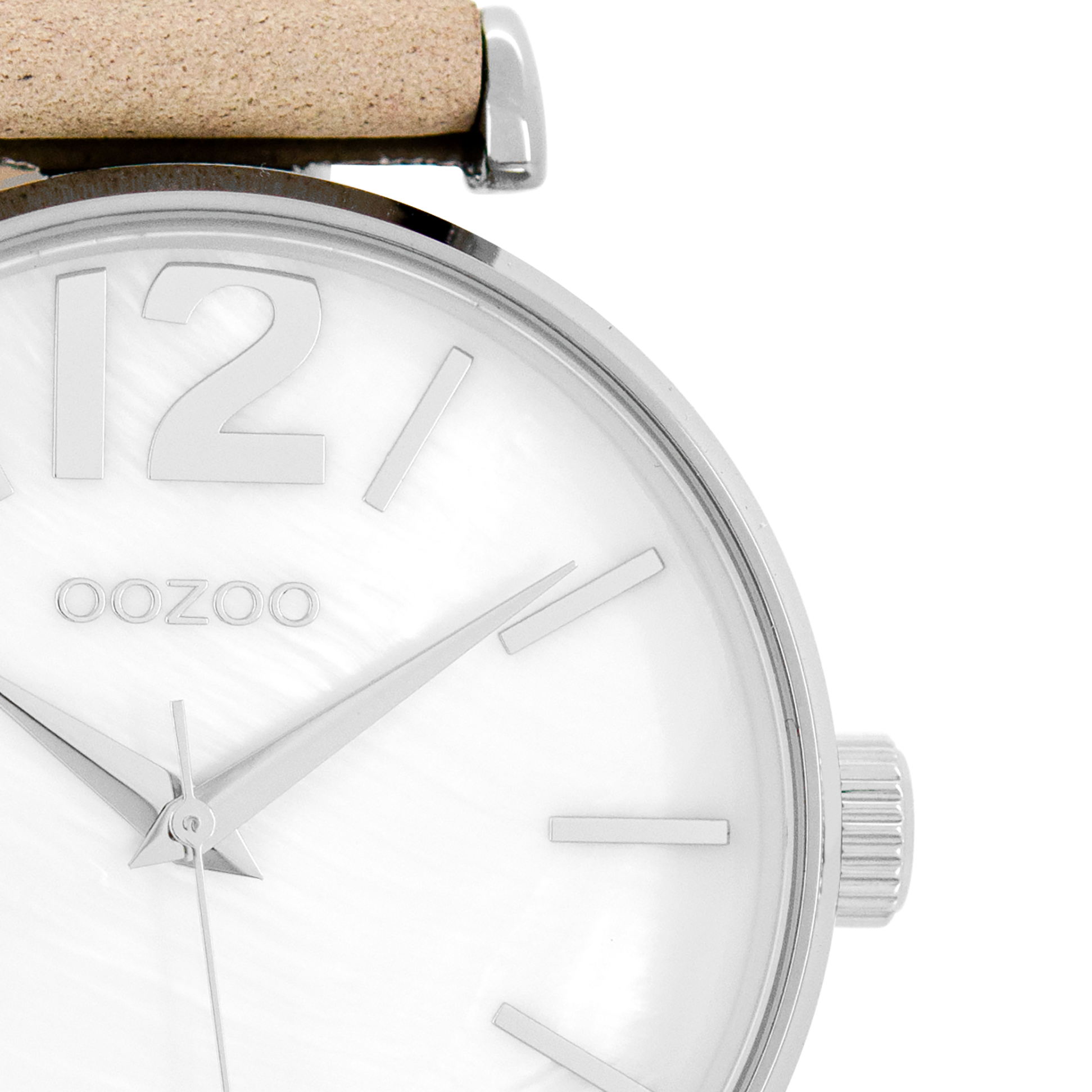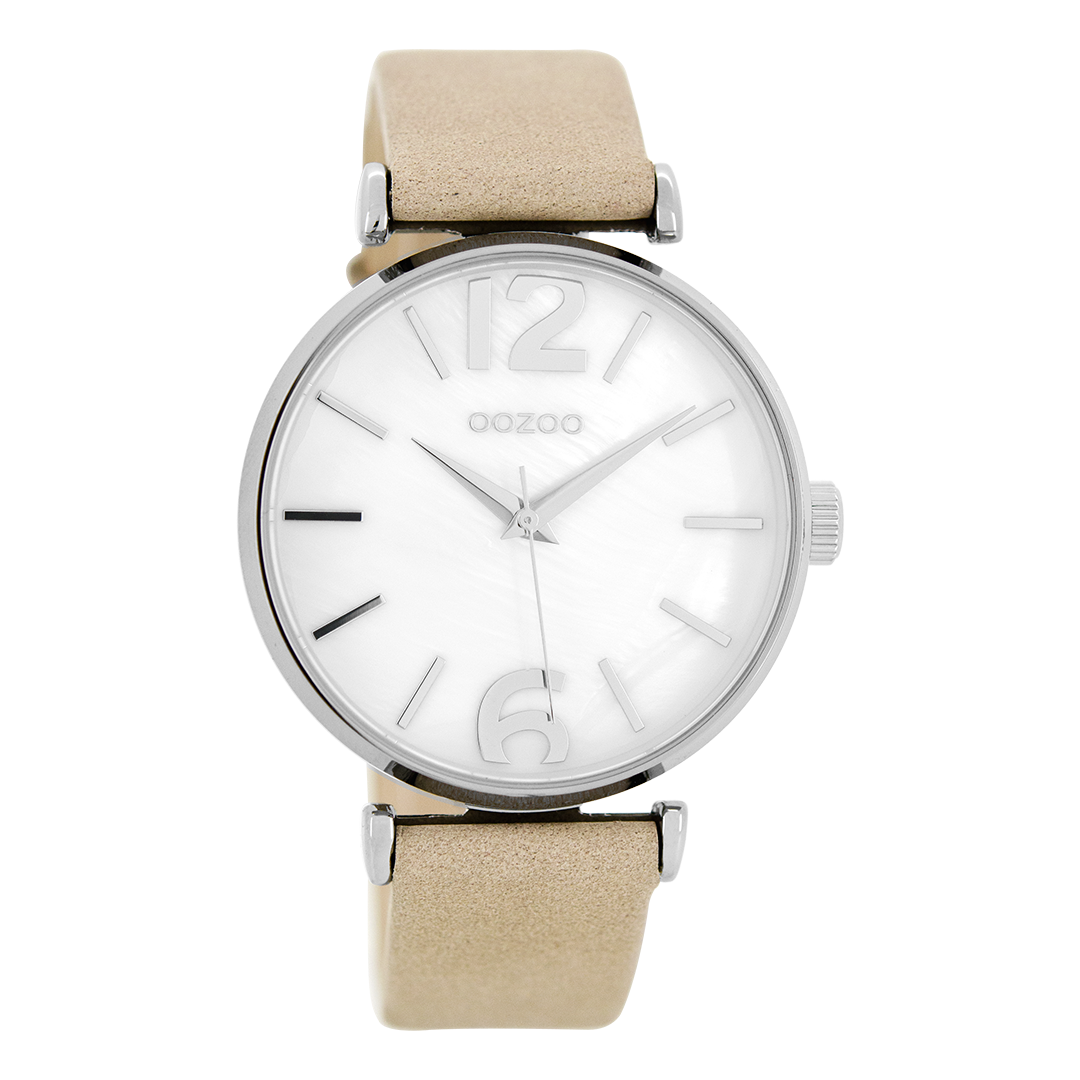Silver coloured OOZOO watch with sand leather strap - C8690