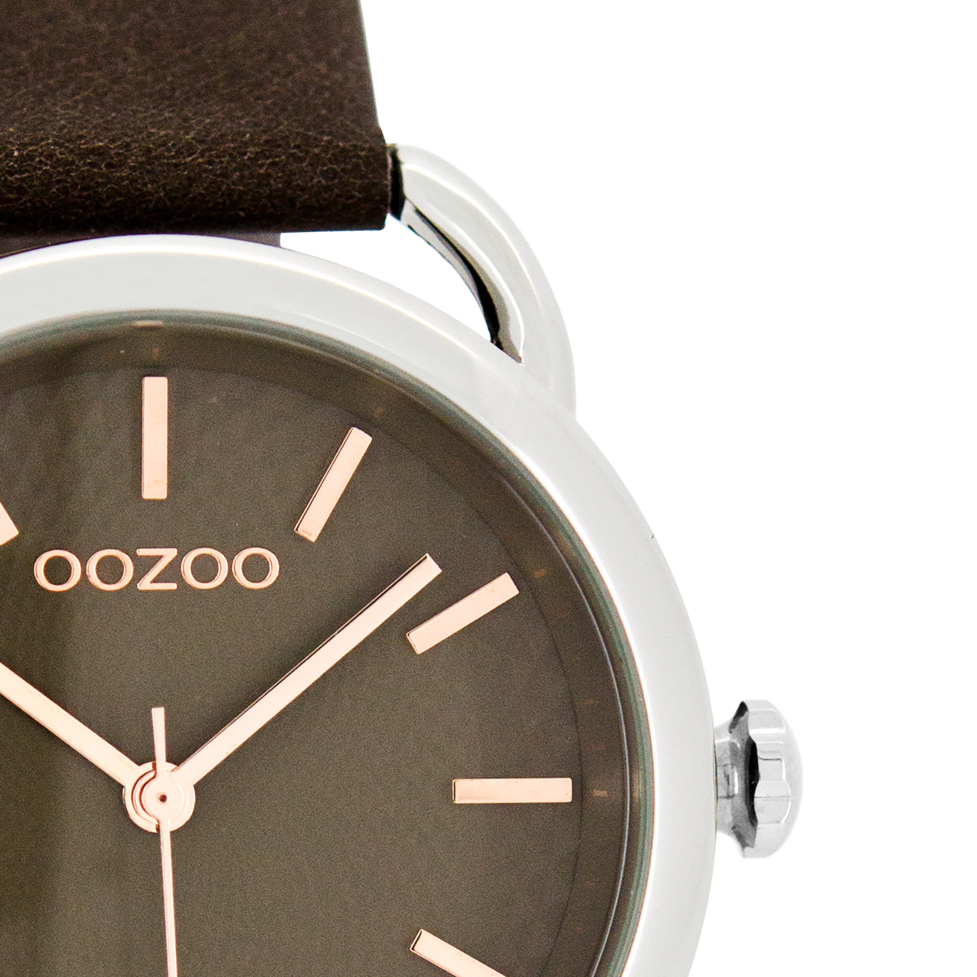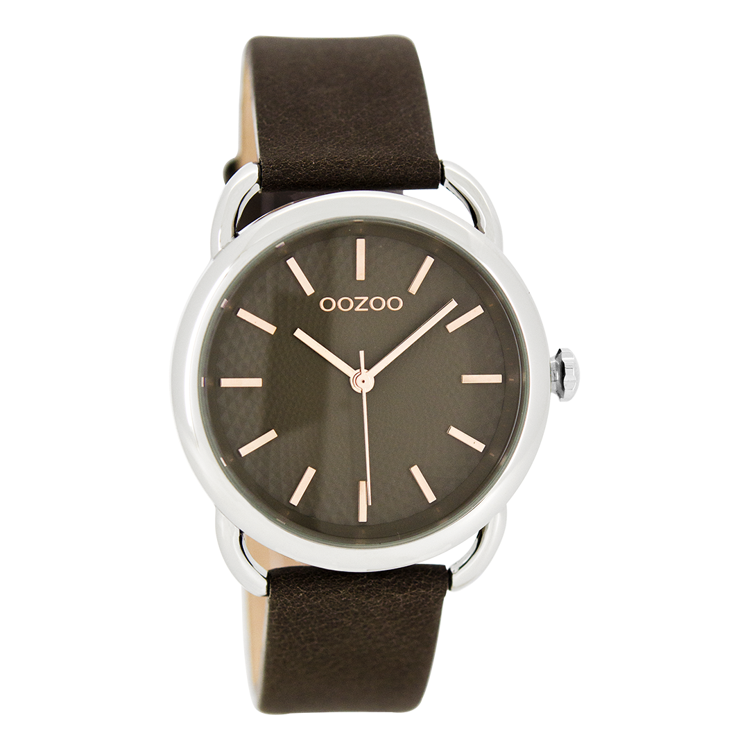 Silver coloured OOZOO watch with brown leather strap - C8719
