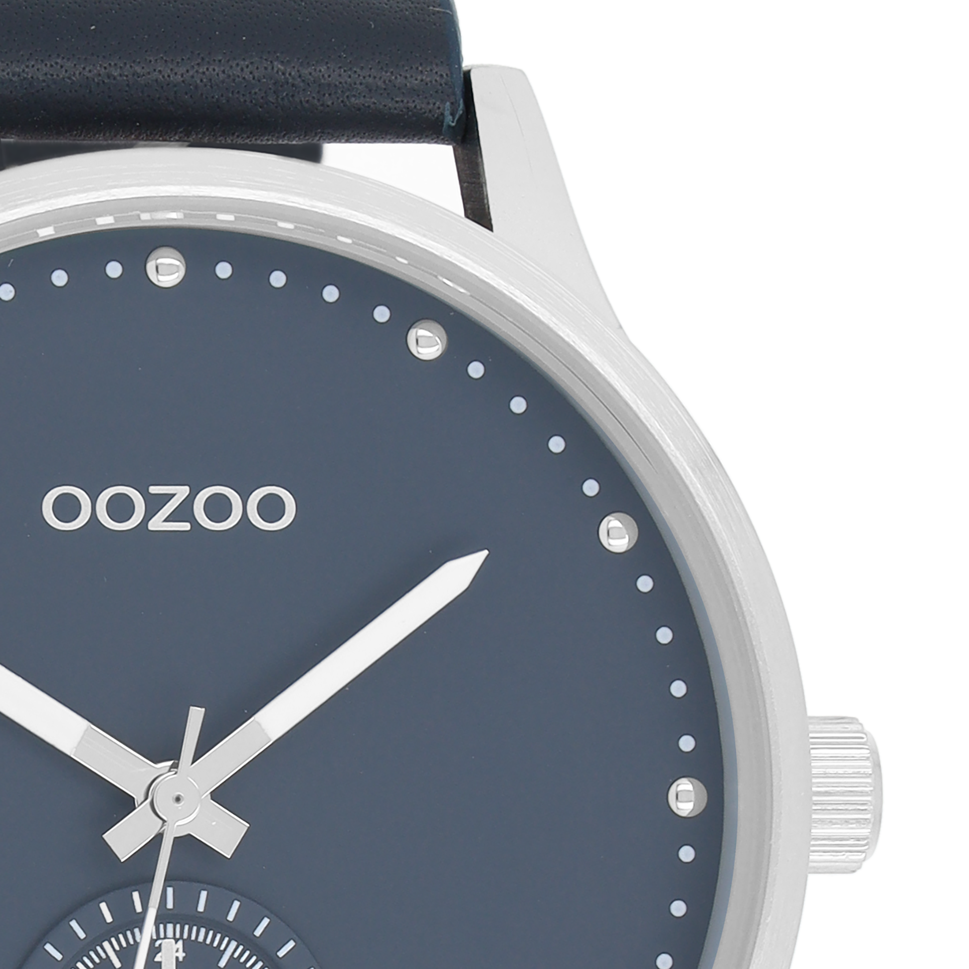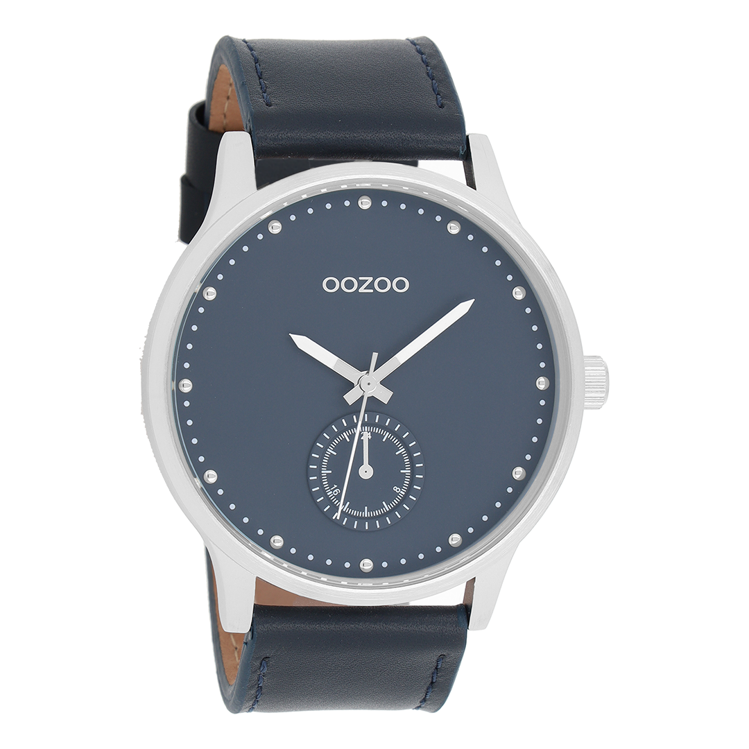 Silver coloured OOZOO watch with dark blue leather strap - C9008