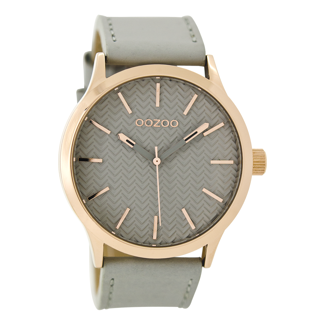 Rose gold coloured OOZOO watch with stone grey leather strap - C9015