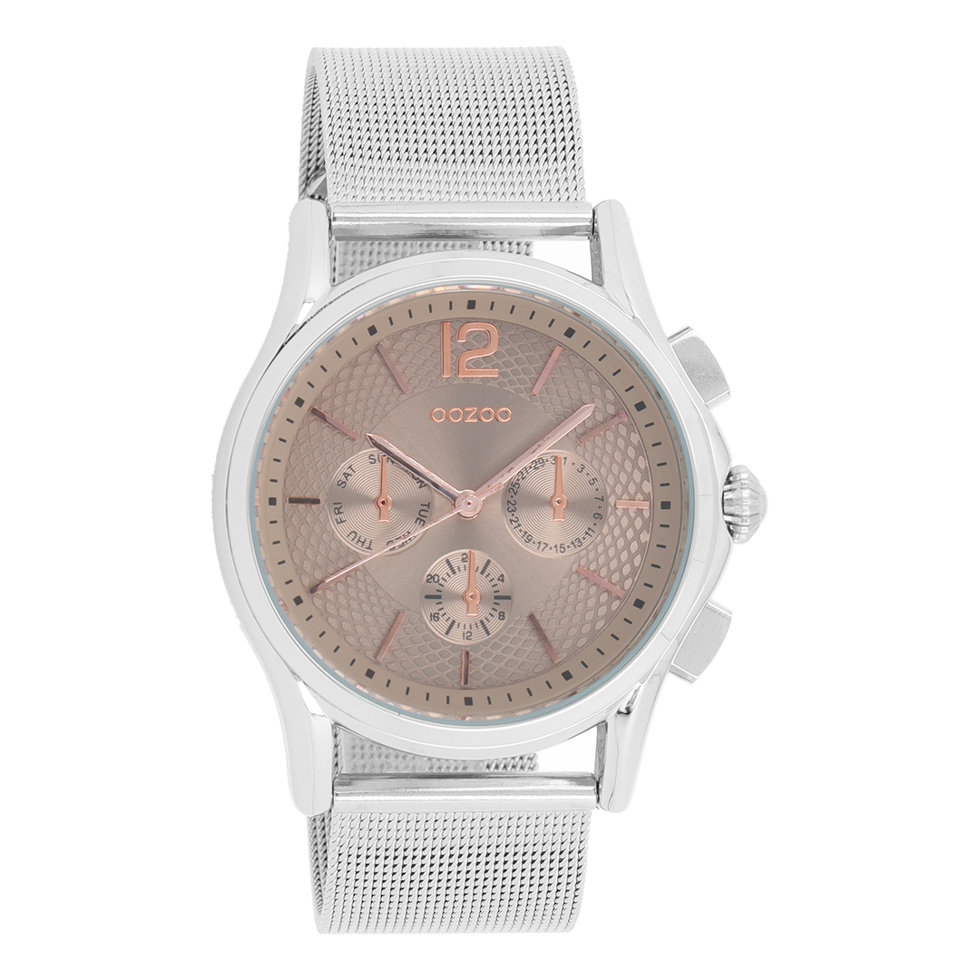 Silver coloured OOZOO watch with metal mesh bracelet - C9107