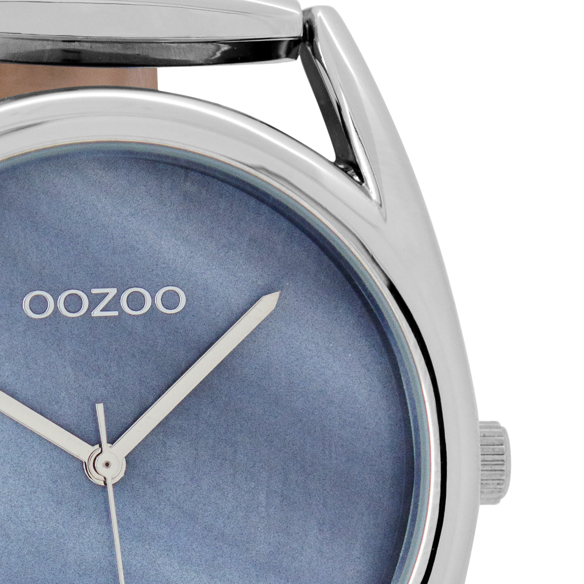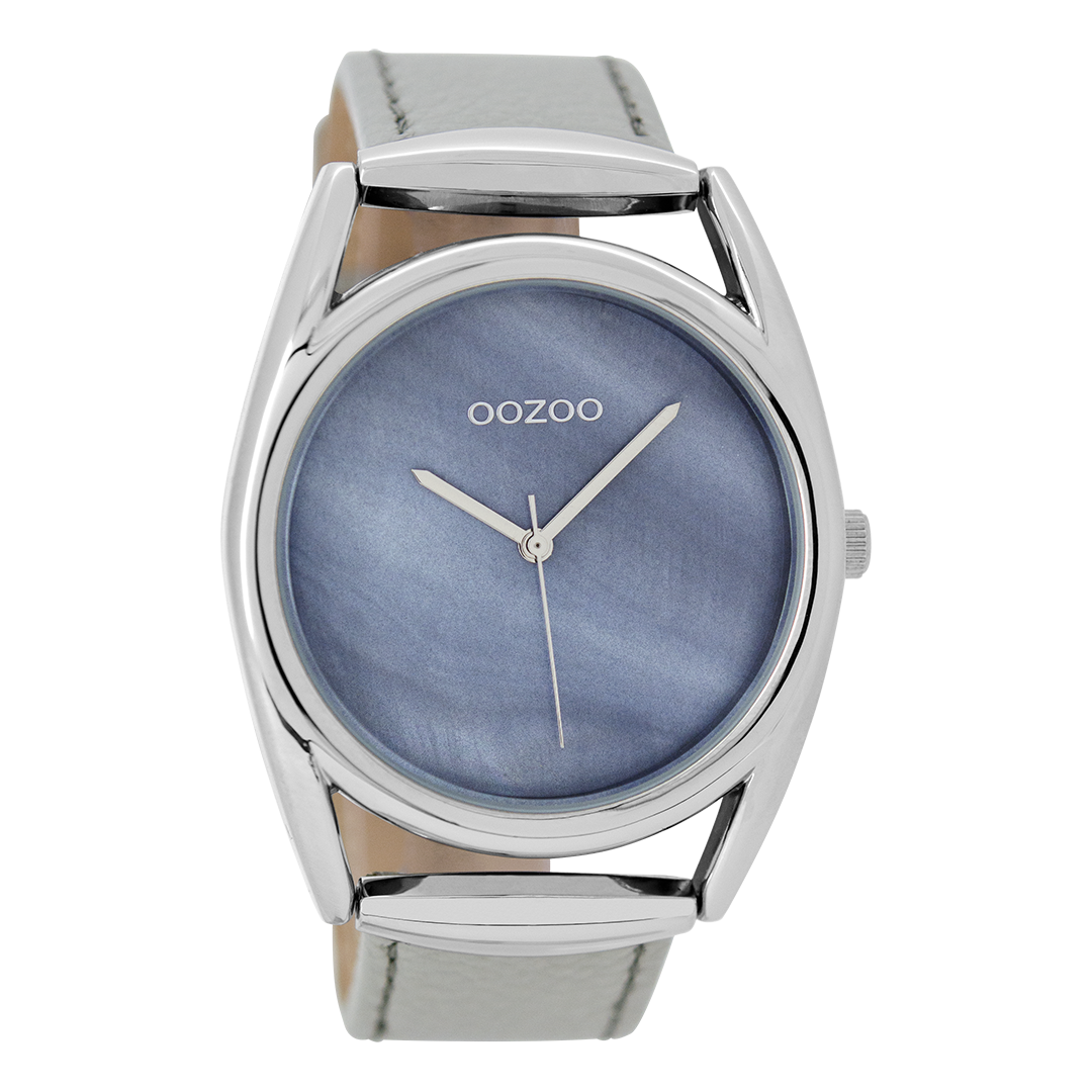 Silver coloured OOZOO watch with stone grey leather strap - C9165