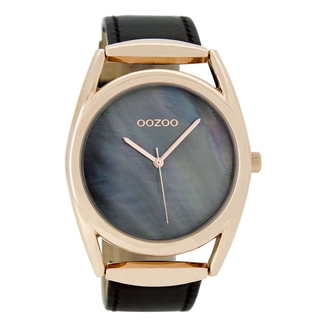 Rose gold coloured OOZOO watch with black leather strap - C9169