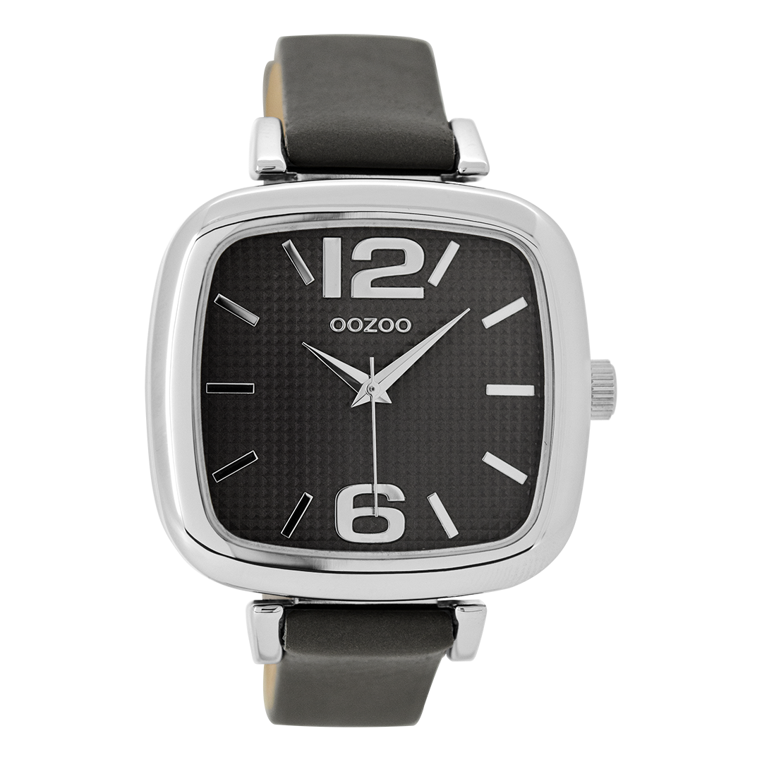 Silver coloured OOZOO watch with elephant grey leather strap - C9183