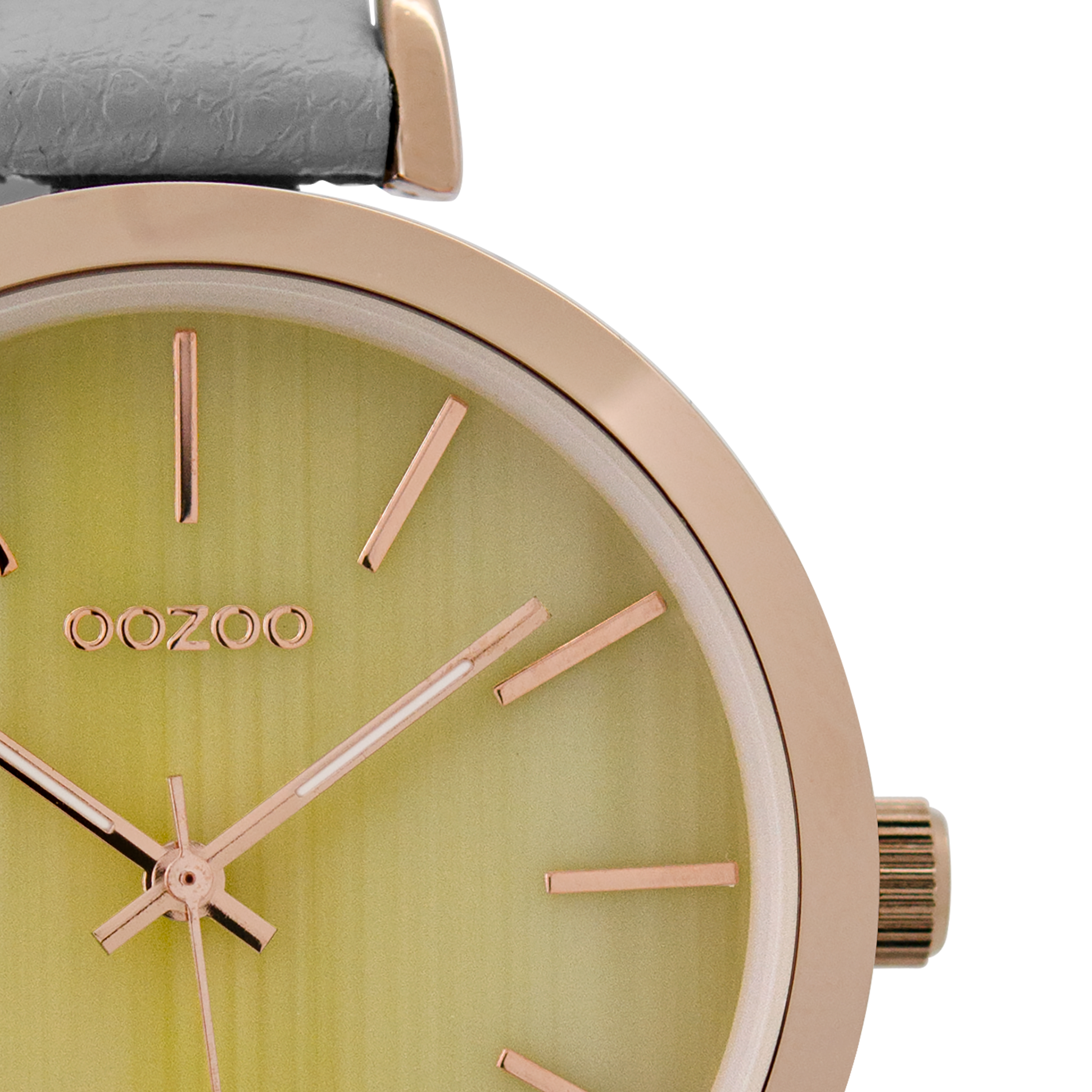 Rose gold coloured OOZOO watch with stone grey leather strap - C9235