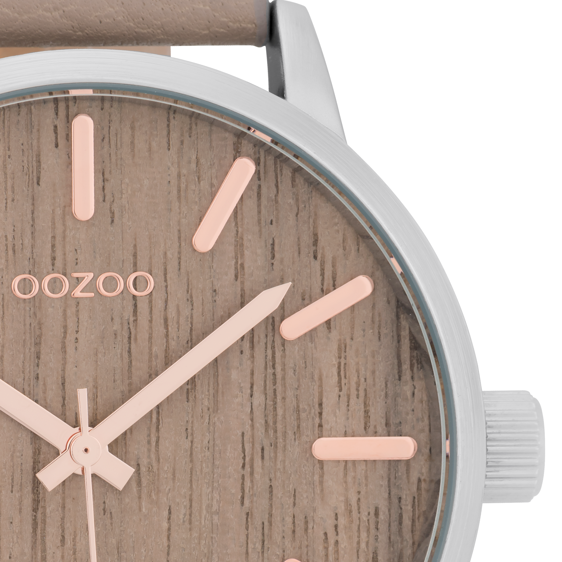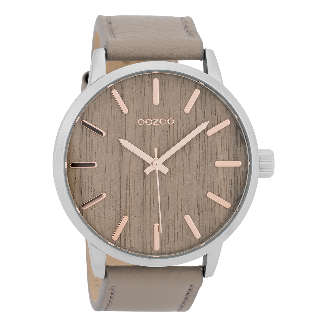 Silver coloured OOZOO watch with taupe leather strap - C9257