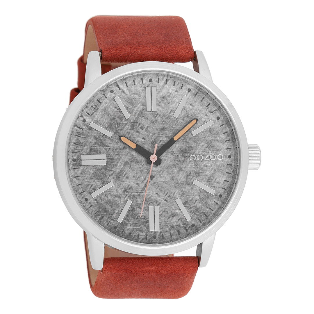 Stand out with this beautiful round gents design from the trendy OOZOO Timepieces collection. The C9407 has a cognac leather strap and 48 mm silver coloured metal watch case. You are making quite the fashion statement with this grey grit dial, silver coloured stripes digits and silver coloured/white hands. This essential watch for your wardrobe has a mineral glass, stainless steel backplate and is nickel safe. This watch has a 2 Japanese movement and is covered by a 2 year warranty (see section 3 of our Refund, shipping & warranty policy).