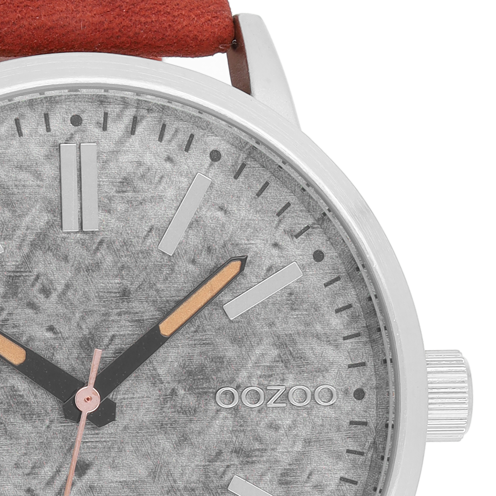 Silver coloured OOZOO watch with cognac leather strap - C9407