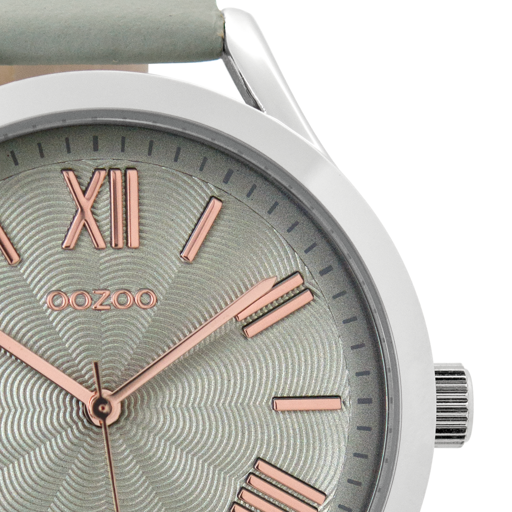 Silver coloured OOZOO watch with stone grey leather strap - C9477