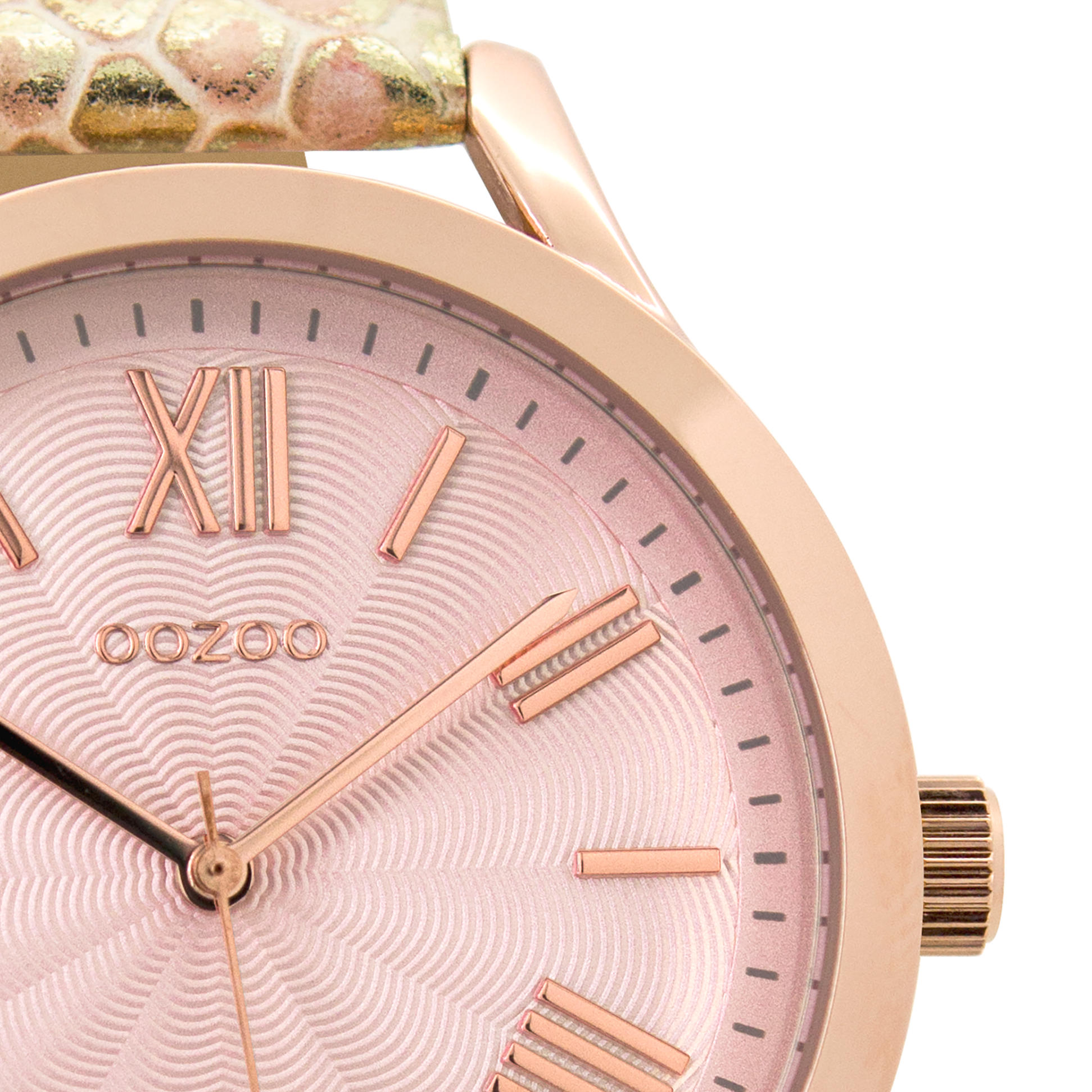 Rose gold coloured OOZOO watch with gold coloured leather strap - C9478