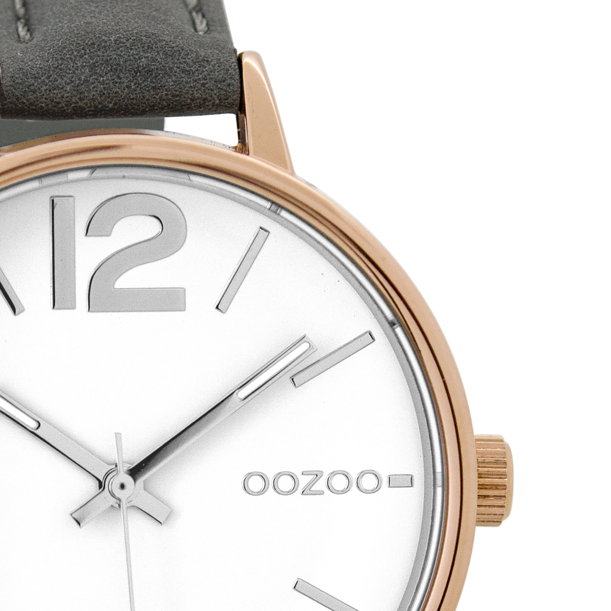 Rose gold coloured OOZOO watch with elephant grey leather strap - C9483
