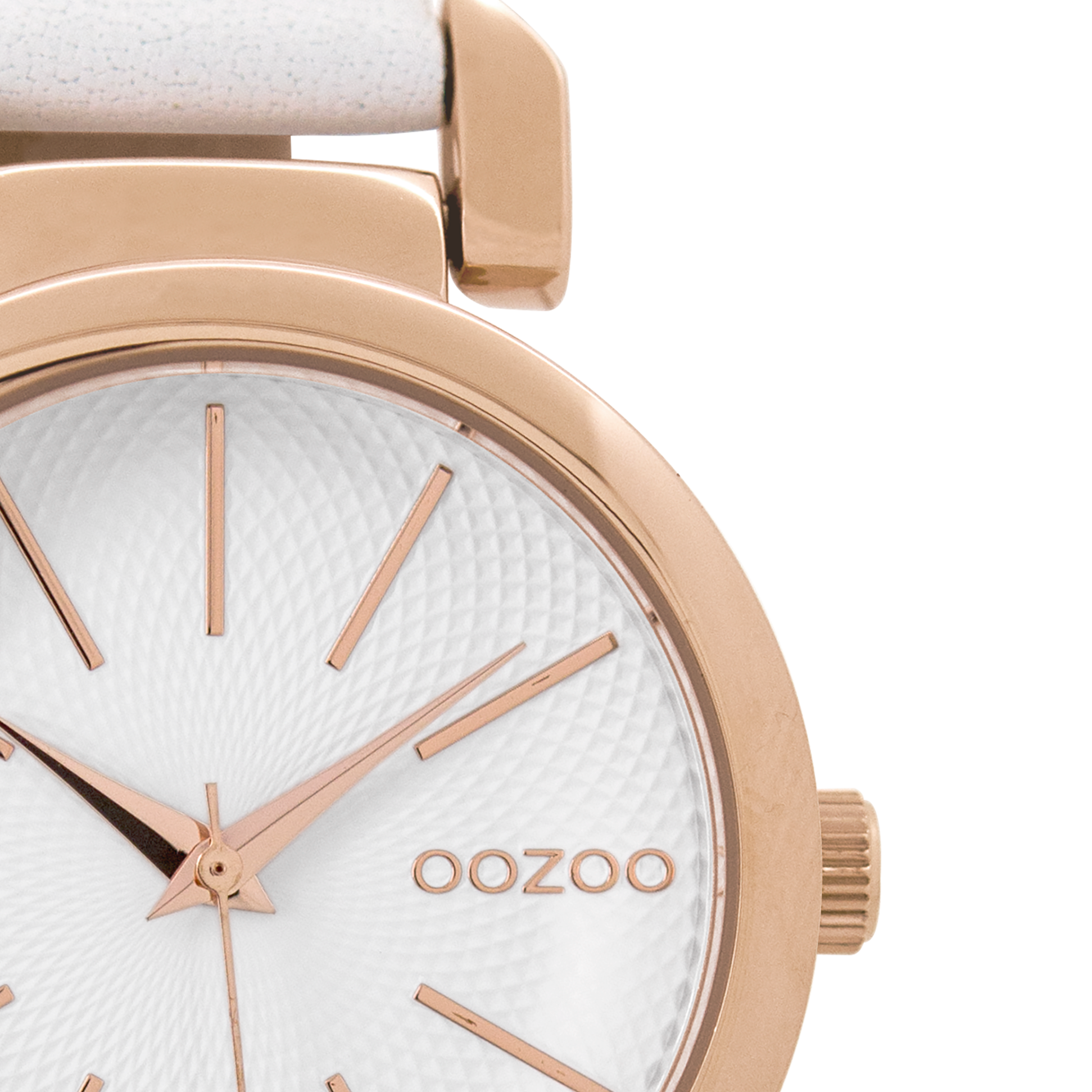 Rose gold coloured OOZOO watch with white leather strap - C9485