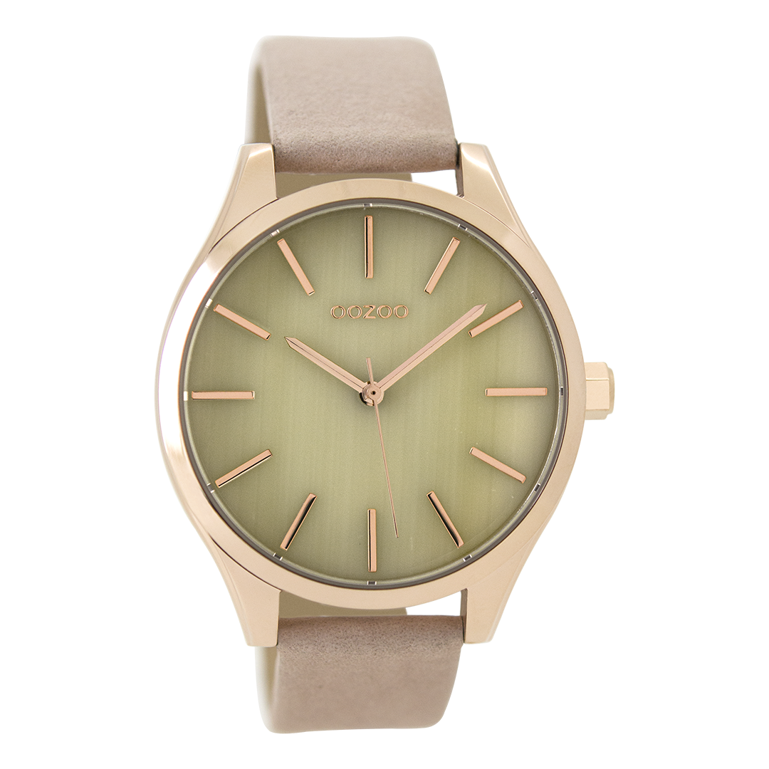 Stand out with this beautiful round ladies design from the trendy OOZOO Timepieces collection. The C9502 has a pink grey leather strap and 42 mm silver coloured metal watch case. You are making quite the fashion statement with this white bone dial, rose gold coloured stripes digits and matching hands. This essential watch for your wardrobe has a mineral glass, stainless steel backplate and is nickel safe. This watch has a 2 Japanese movement and is covered by a 2 year warranty (see section 3 of our Refund, shipping & warranty policy).