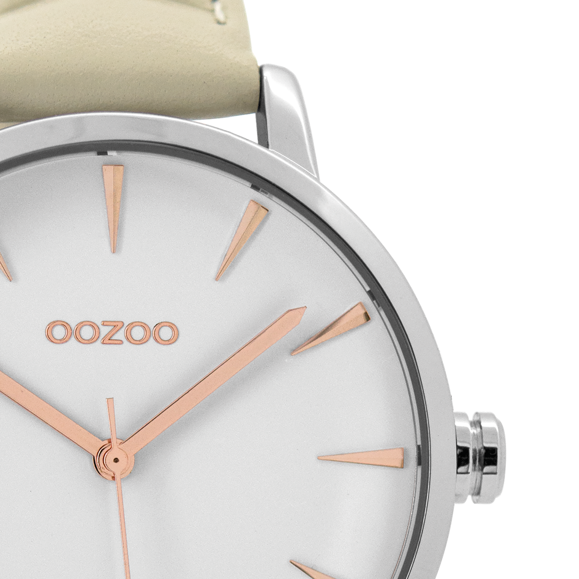 Silver coloured OOZOO watch with sand leather strap - C9505