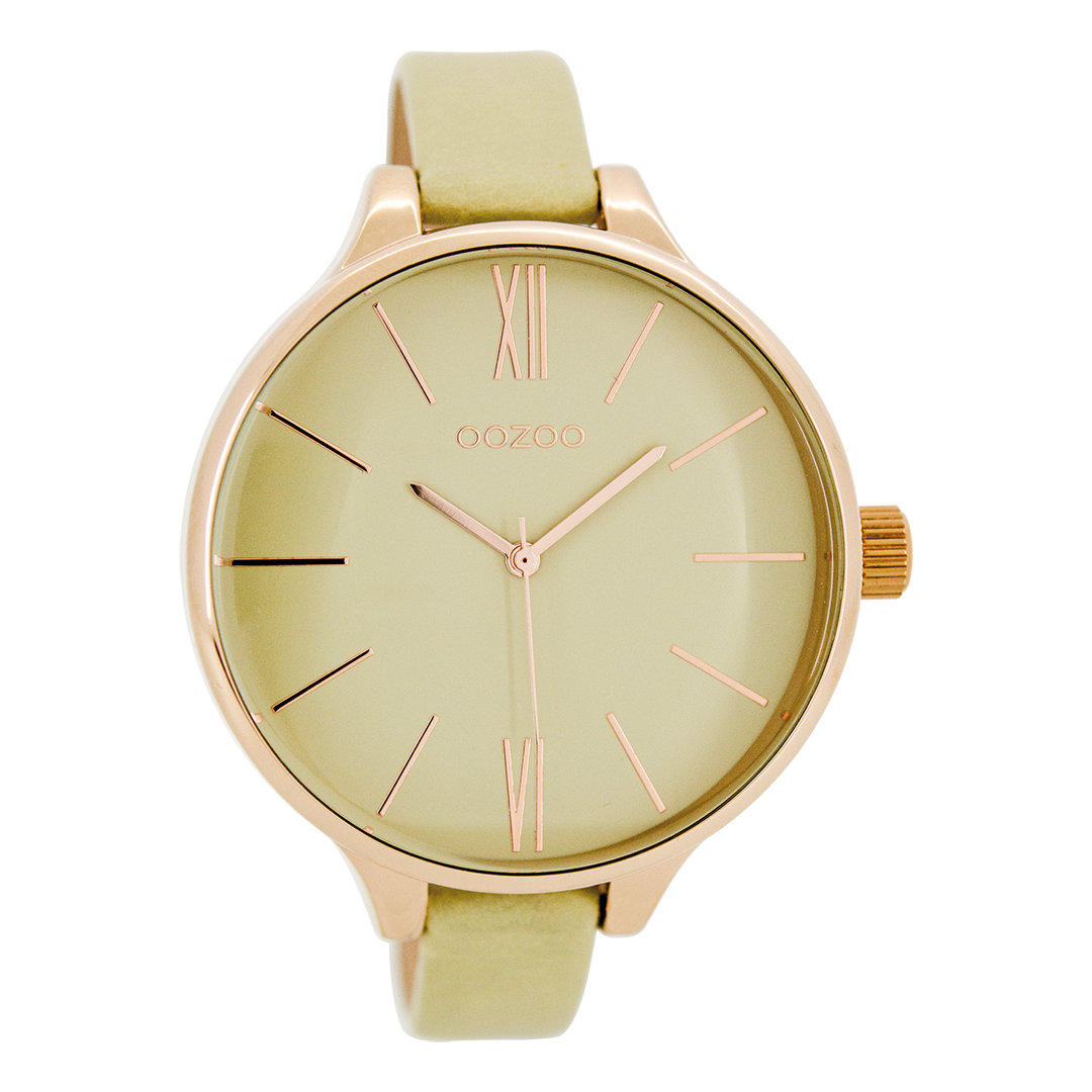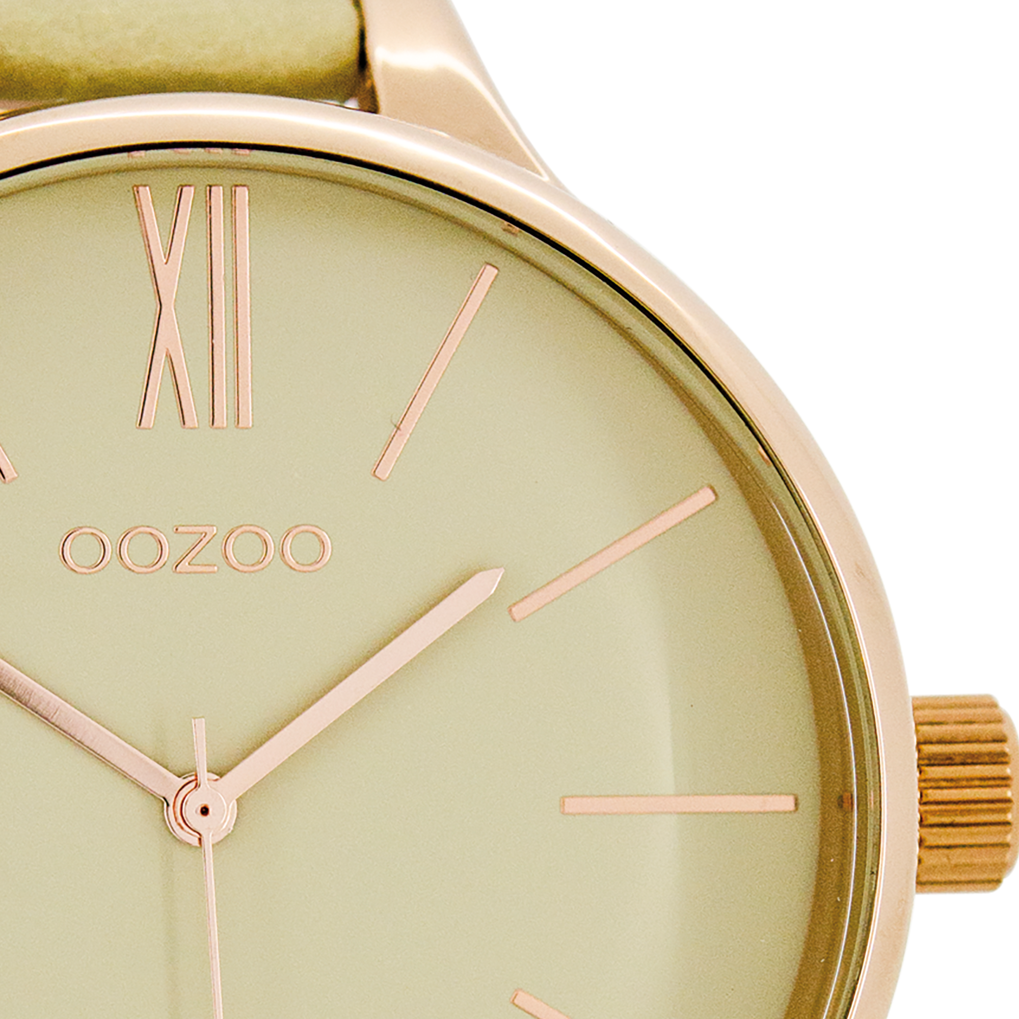 Rose gold coloured OOZOO watch with sand leather strap - C9541