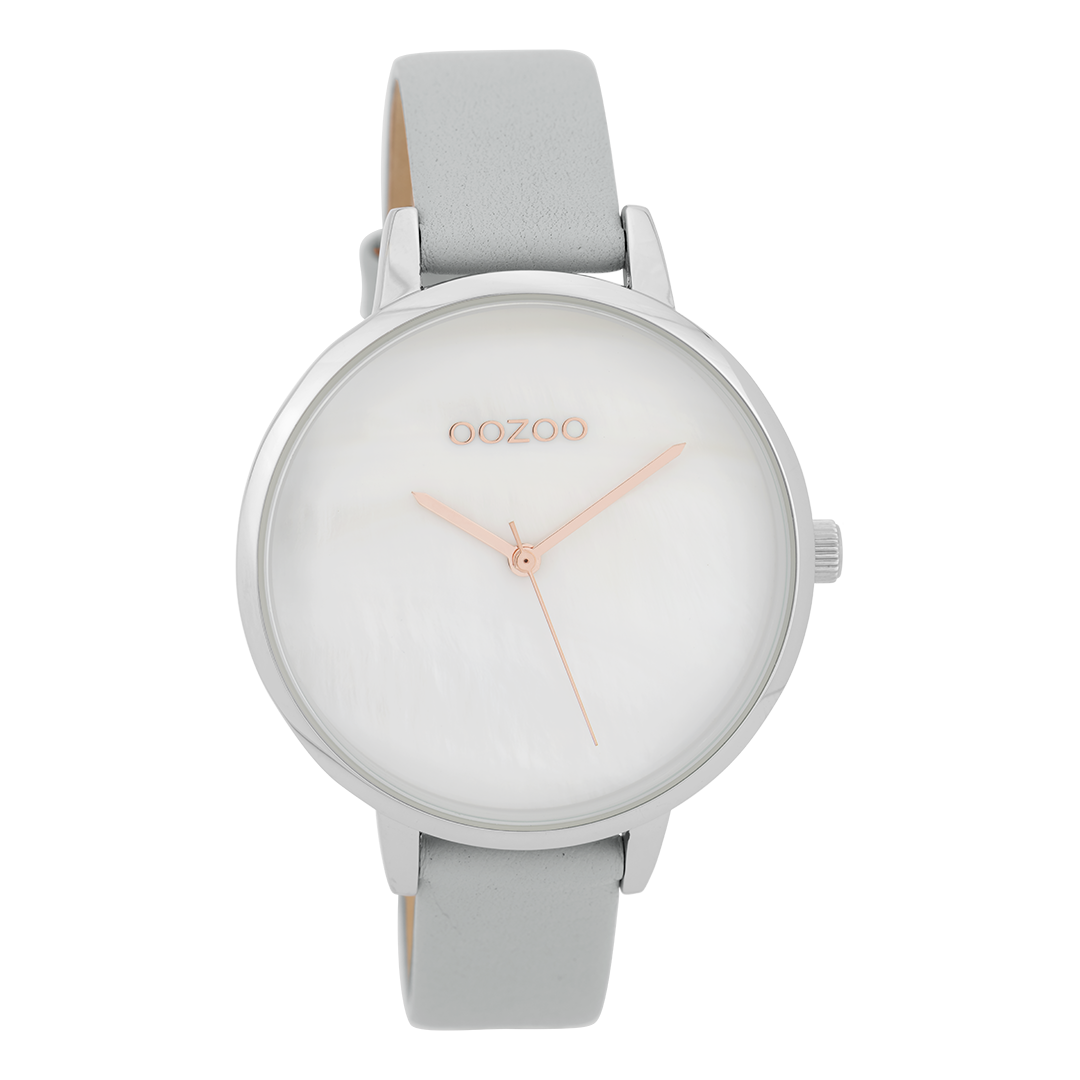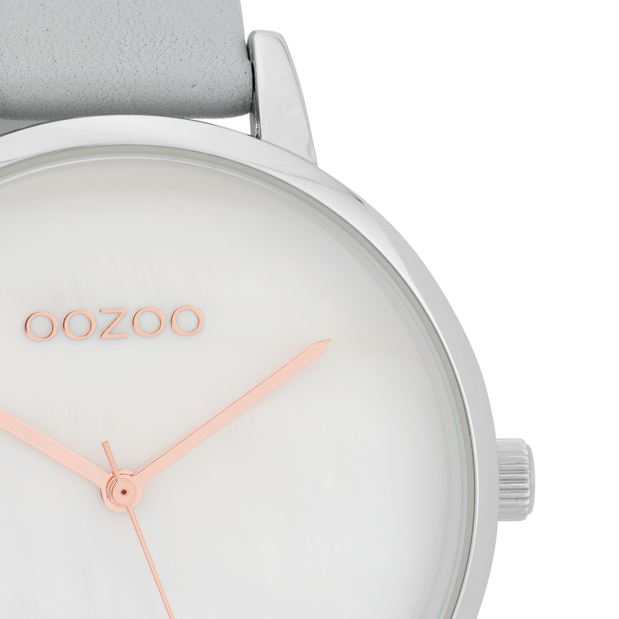 Silver coloured OOZOO watch with stone grey leather strap - C9585