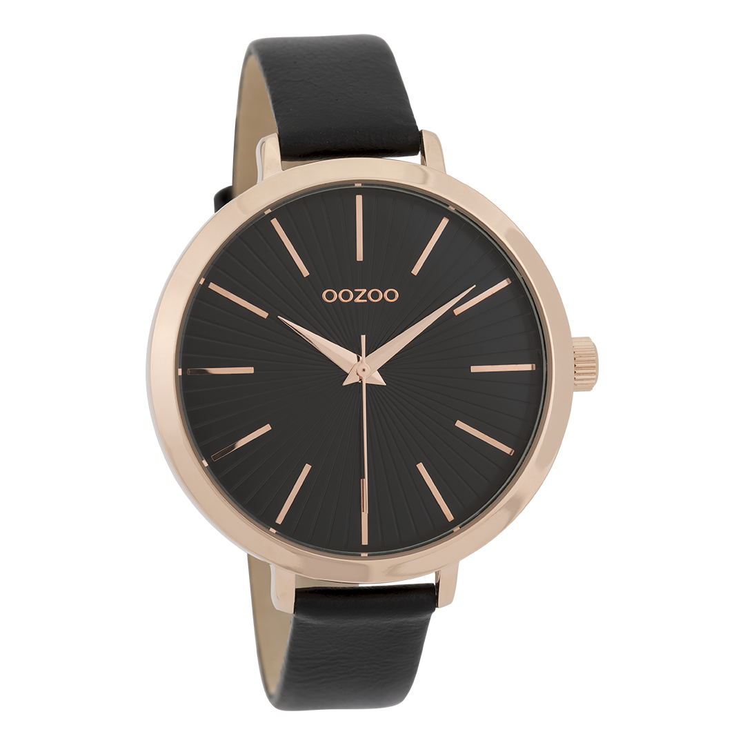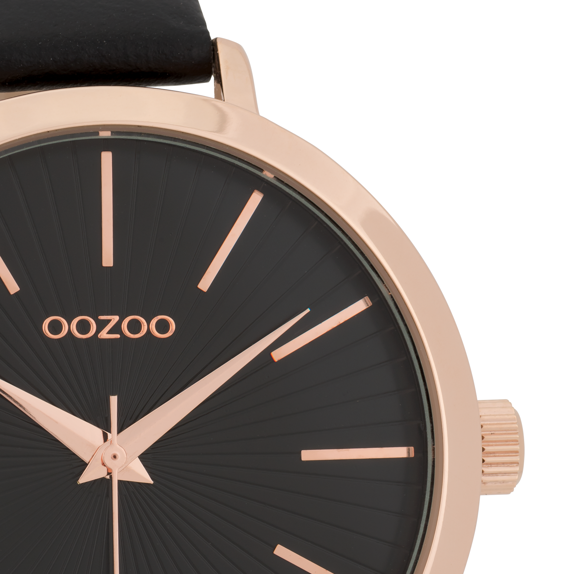 Rose gold coloured OOZOO watch with black leather strap - C9674