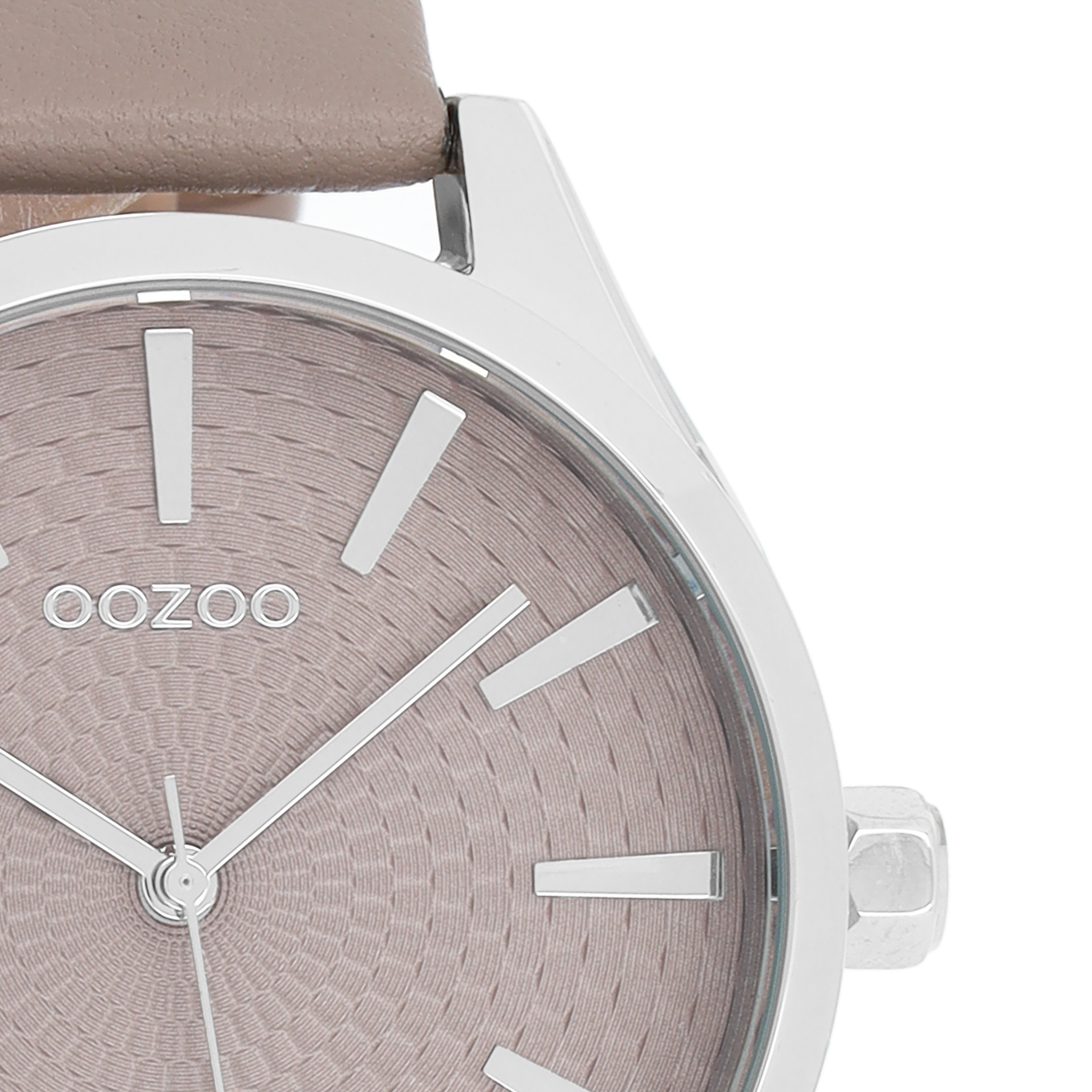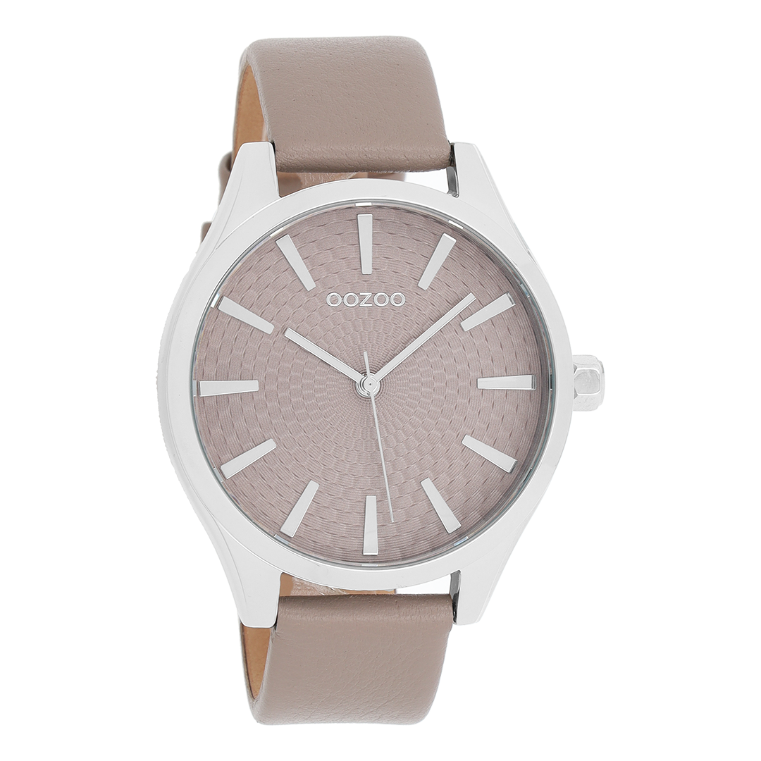 Silver coloured OOZOO watch with taupe leather strap - C9687