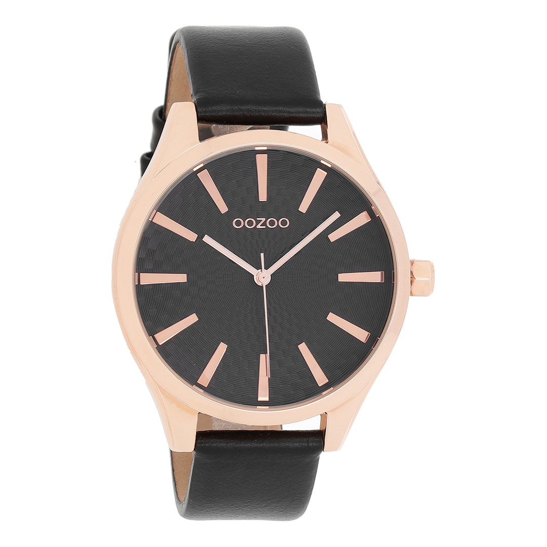 Rose gold coloured OOZOO watch with black leather strap - C9689
