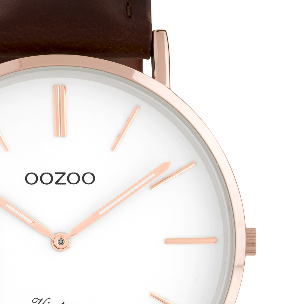 Rose gold coloured OOZOO watch with brown leather strap - C9832